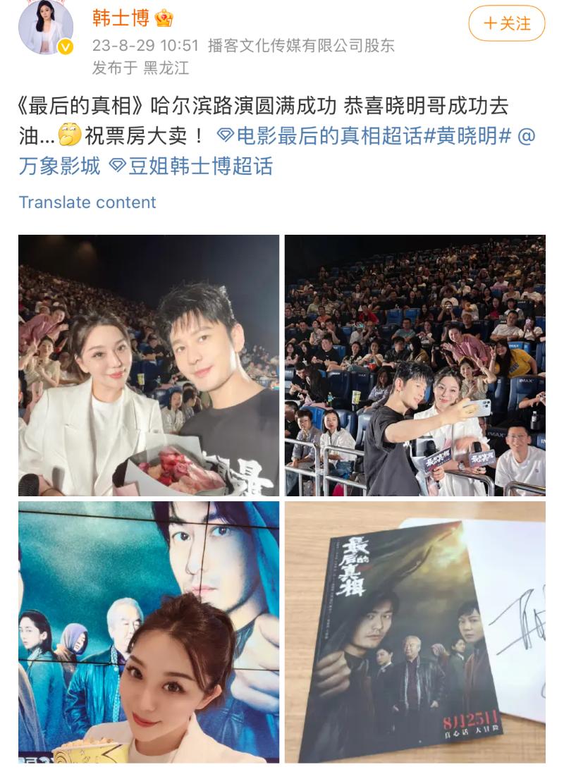 甚至2023年還去了電影首映禮,並和黃曉明合照~
