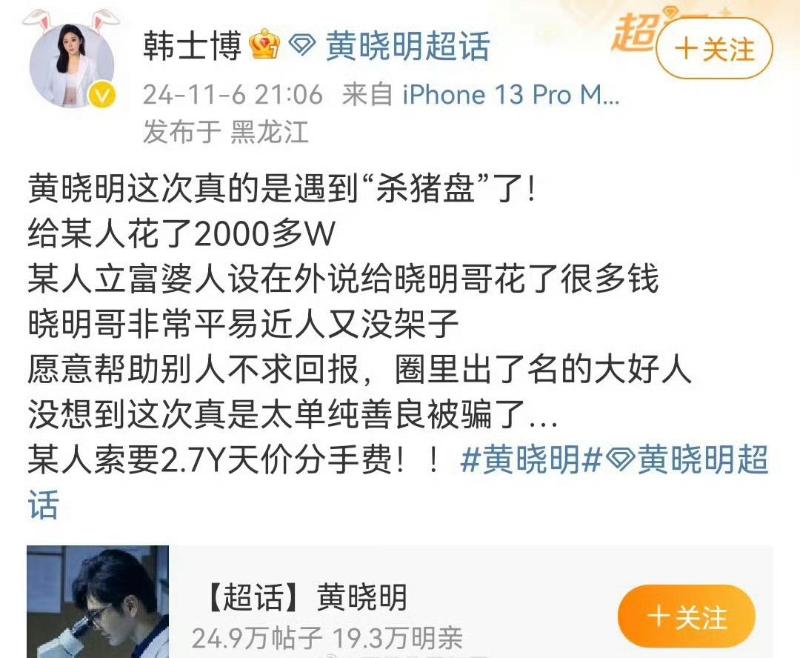 不止開直播,還直接發了文在黃曉明超話👇