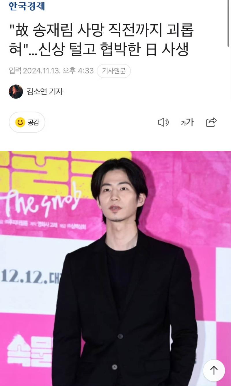 韓國演員宋再臨于本月12號下午,被發現死于首爾城東區的家中,現場發現了兩大張A4遺書,警方已經以「無他殺嫌疑」結案。