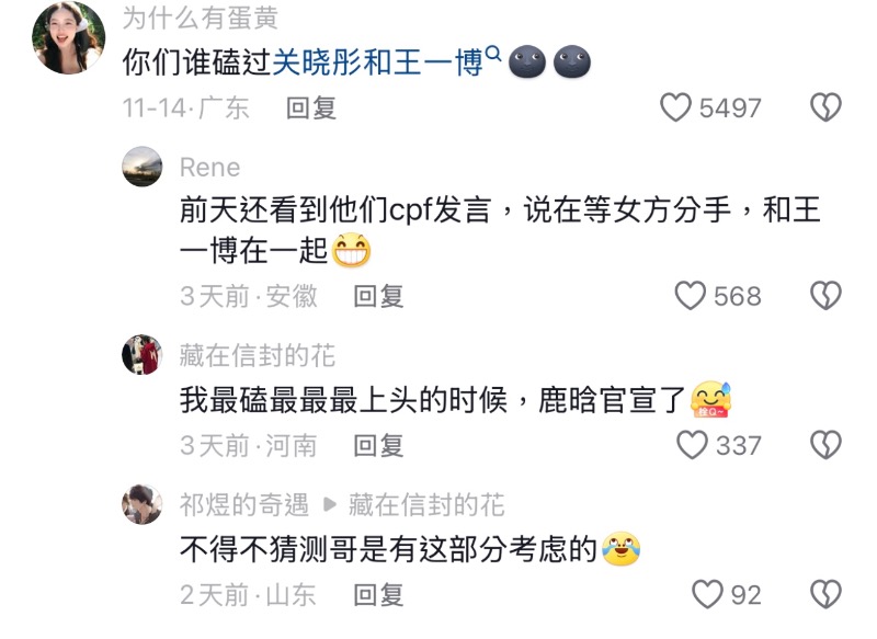 最經典的是,就連王一博也被拉下水~原來是兩人之前在《天天向上》的CP感太強,當時也有不少人在線嗑,只不過很快的,鹿晗就官宣了關曉彤在一起,行動之快…