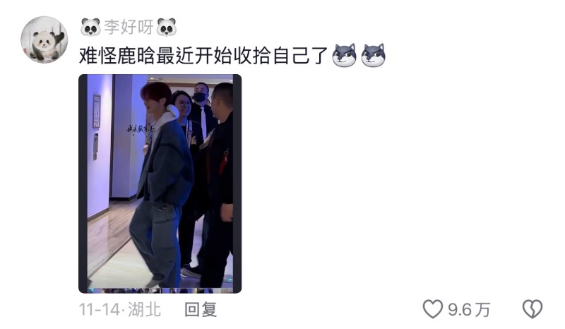 甚至因為其中一張神圖太出圈,也被解讀成在效仿鹿晗官宣之後,在朋友圈公開的和關曉彤的同框照!