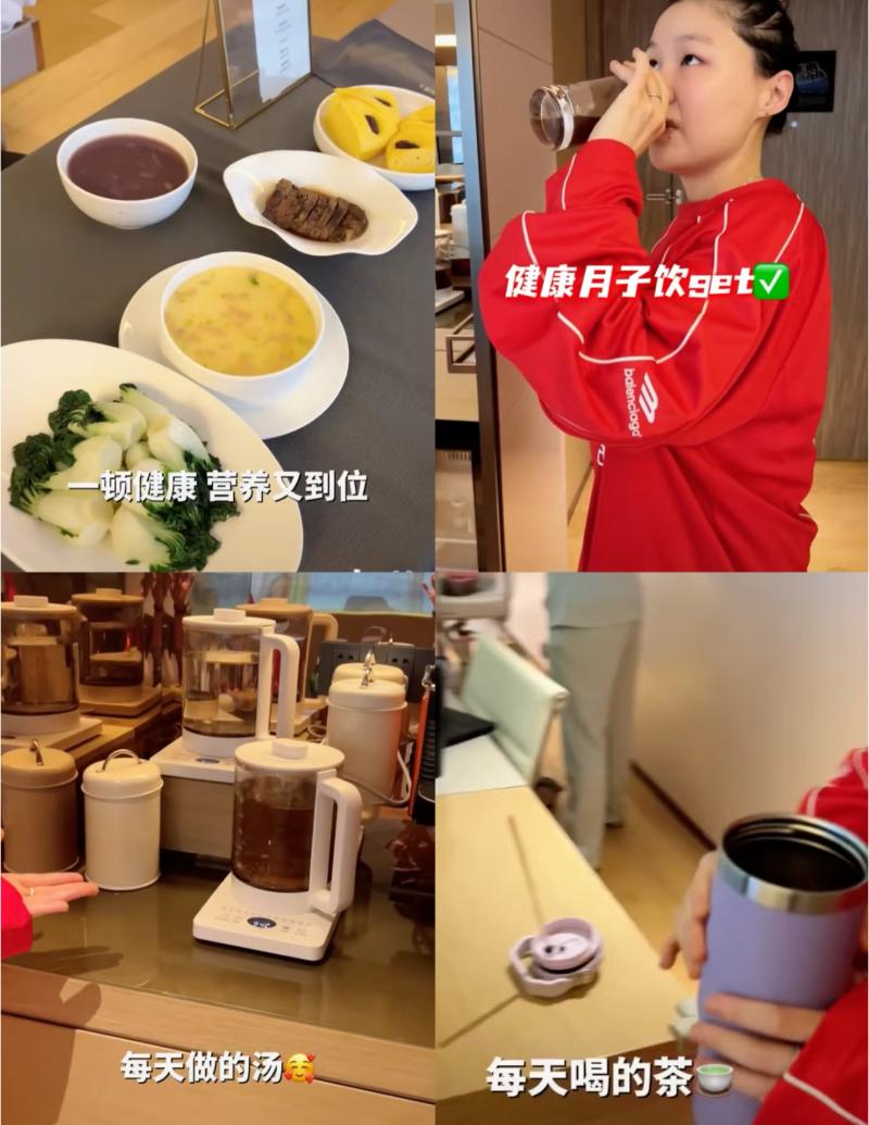 公開了自己每天吃的月子餐,不但有三餐,每天還有提供補湯喝茶~