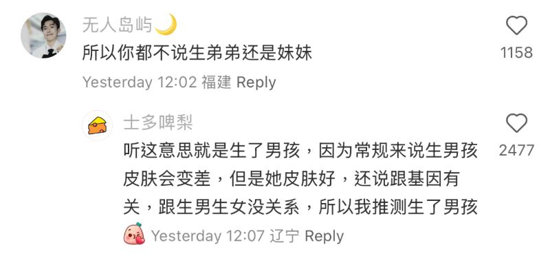 最後,到底金靖的寶寶是男生還是女生呢?至今依然沒有官宣,不過網友從她透露皮膚狀態來猜測,應該生的是男孩👇
