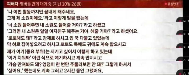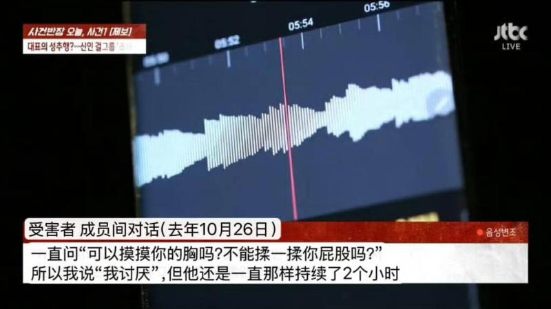 媽啊~這新聞也真的太炸裂了吧!是噠,在韓國JTBC節目《醜聞主管》中,曝光了一名第五代女團成員在要求離開團體時,遭到了公司代表的性侵犯!節目中也公開了受害者的音頻,講述自己是如何被侵害~