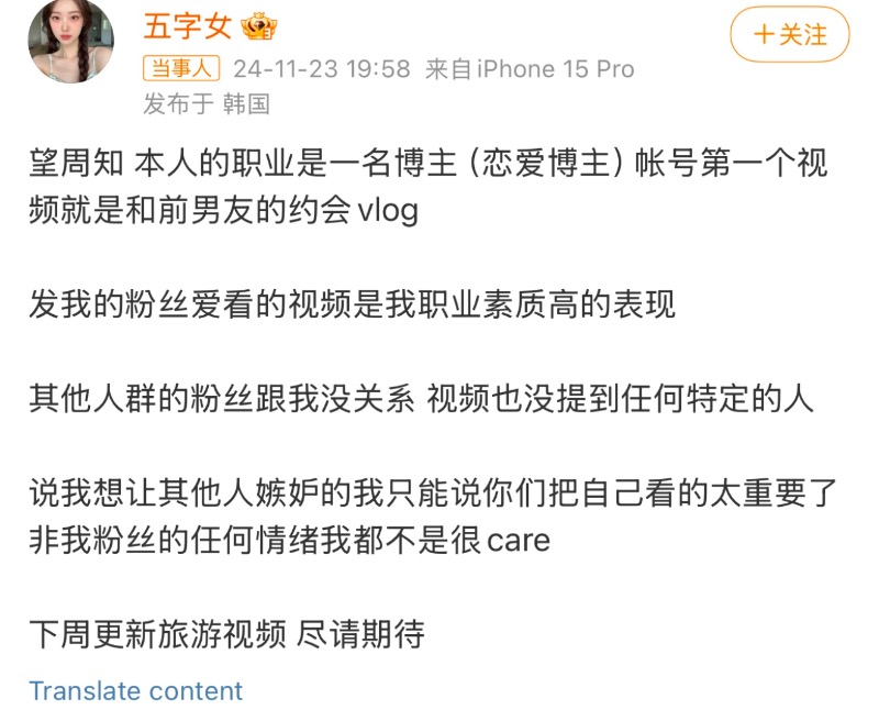 隨著熱議,該博主發了微博,表示這已經是前男友👇