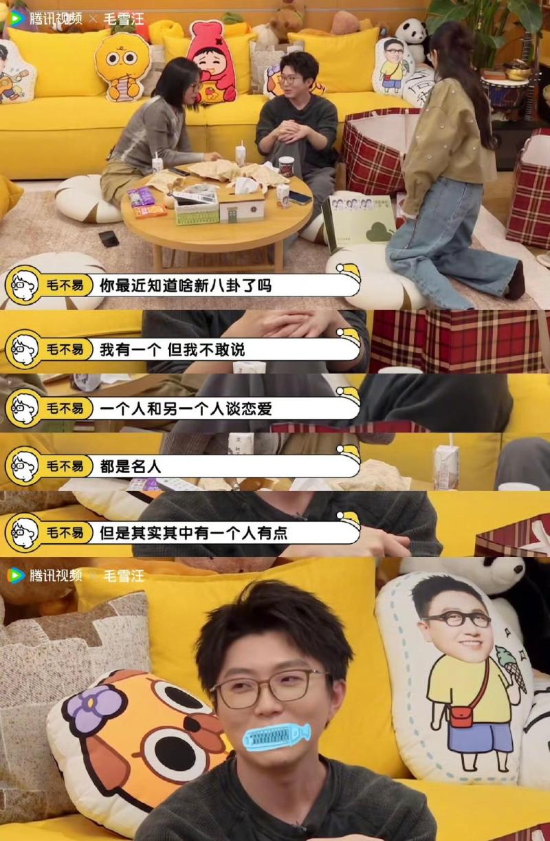 毛不易也爆料,表示自己知道一個不敢說的八卦,兩人都是名人,但其實其中一人有點…這裡節目組手動打碼了~