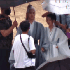 就是說,這裡復盤一下,之前兩人在片場,就一直傳出互動很親密,像是同撐一把傘👇