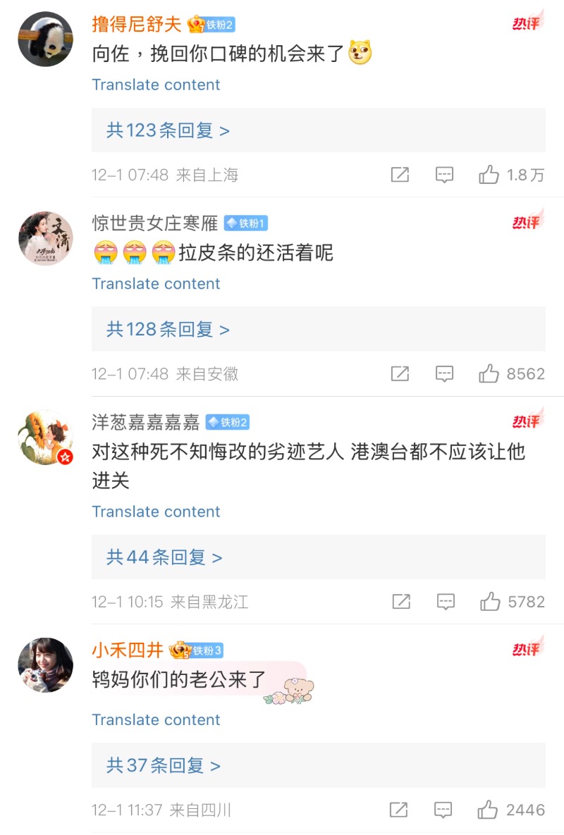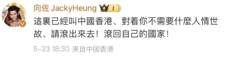向佐數次怒斥向佐帶來不良風氣,讓他滾出香港,獲得不少中國網友力挺!