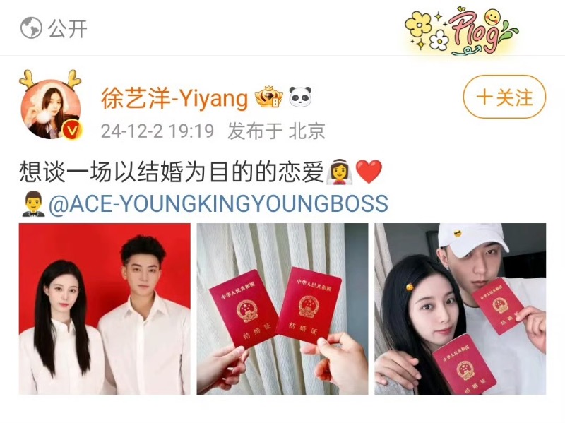 來看看,徐藝洋的官宣詞是「想談一場以結婚為目的的戀愛」