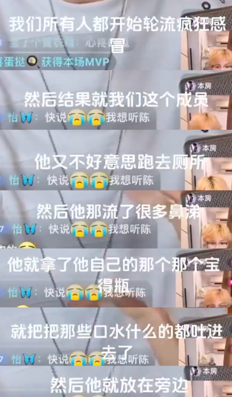 這到底怎麼一回事呢?原來是曾參加過《偶練》的練習生陸定昊和貝汯璘,近日連線PK大談大廠往事,貝汯璘分享《大藝術家》組說當時有人感冒了,因為忙著練習沒時間去廁所,所以就直接往瓶子裡吐痰👇