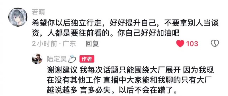 隨後,陸定昊直播時也說了一些參加比賽的私下故事,還鼓勵大廠女孩刷禮物,才願意說出故事後續!