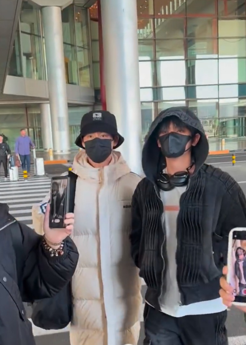 而在機場的造型也是,白色羽絨服的是助理,旁邊的是丞磊,同樣被吐槽搶了丞磊風頭👇