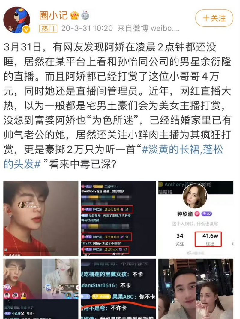 不但如此,她甚至還打賞了余衍隆四萬多,還是直播間管理員!