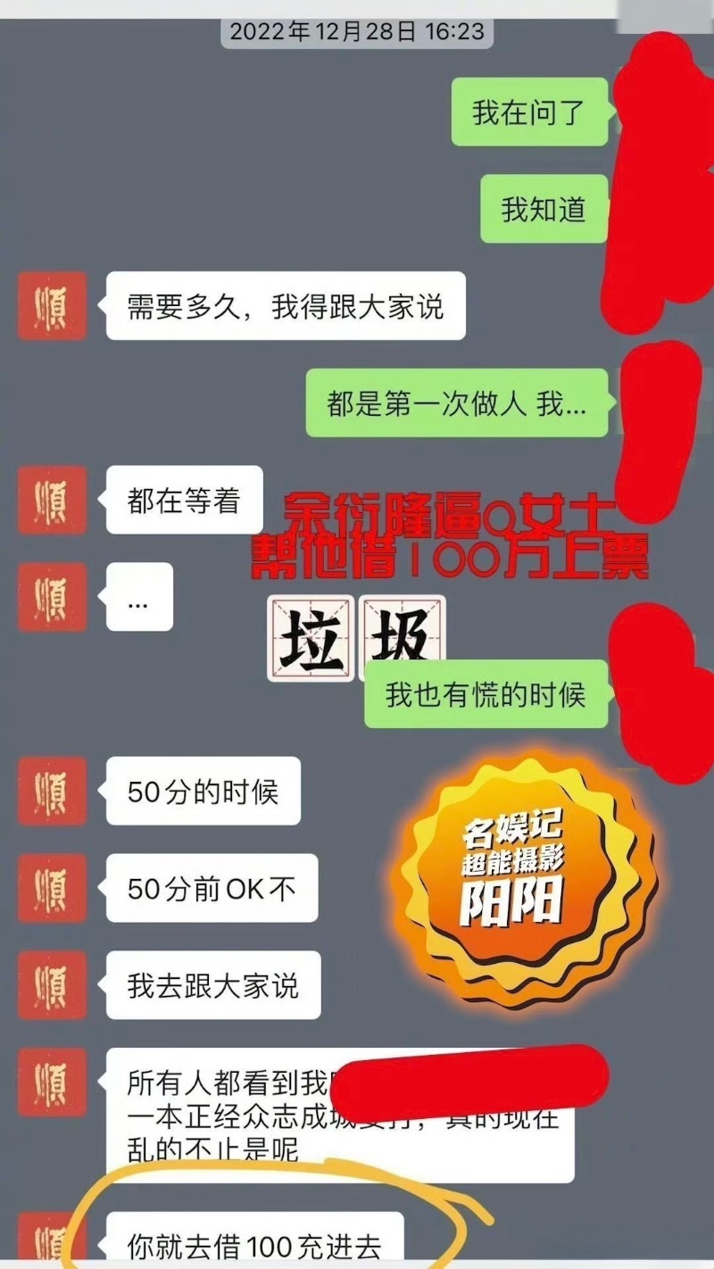 來看看余衍隆和Q女士的聊天記錄,要求對方借100萬,然後再充飽,對方稍微不滿足,他就大罵:你怎麼還沒死!