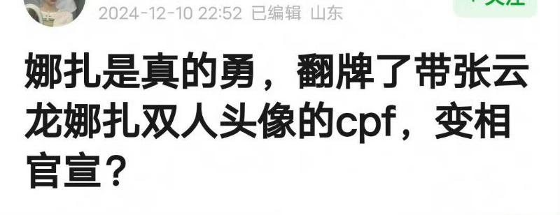 雖然但是,兩人至今沒有官宣,也沒有回應,只不過沒想到娜扎日前一個舉動,被解讀“認了戀情”!到底怎麼一回事呢?有網友發文,表示娜扎十分勇,居然翻牌了她和張雲龍CP的超話主持人👇