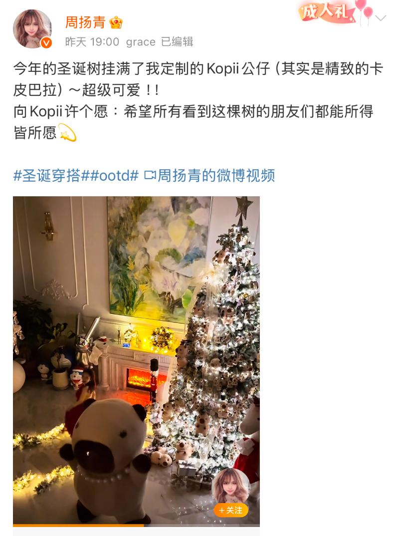 而有關注周揚青的也知道,每年的聖誕節,她都會展示家中的聖誕樹的裝飾,每次都會引起關注,先來看看之前幾年的聖誕樹展示,像是2020年的👇