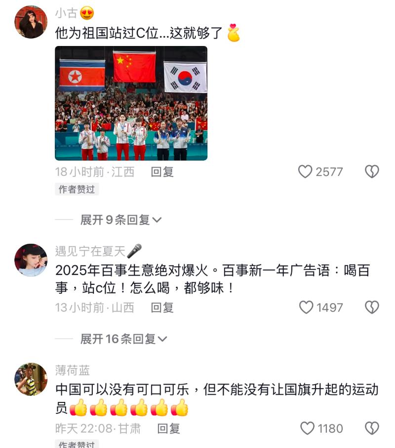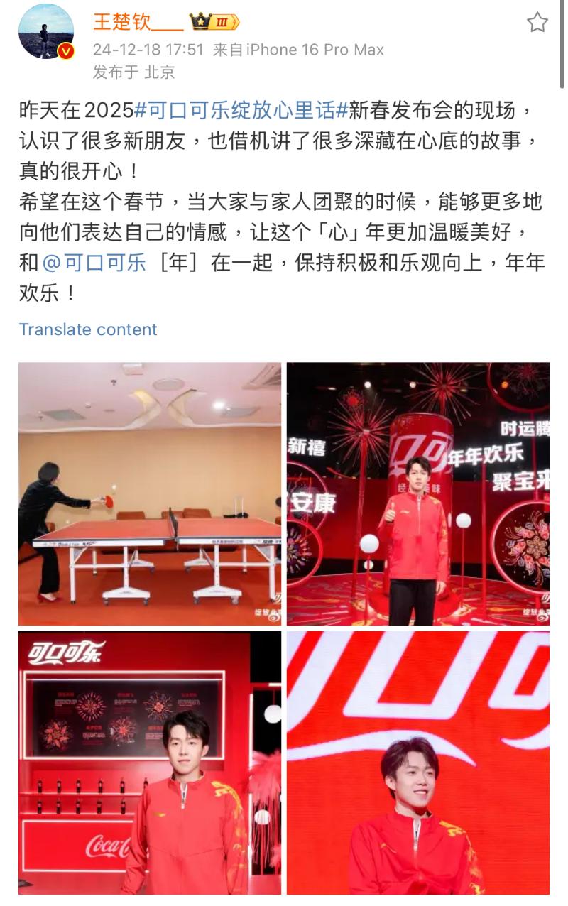 就是說,可口可樂真的是把潑天的富貴往外推啊!是噠,都知道楊洋是可口可樂品牌代言人,而中國國家乒乓隊也一向是同品牌代言人,巴黎奧運前,楊洋還特別發文為「莎頭」(王楚欽+孫穎莎)加油,實屬夢幻聯動!
