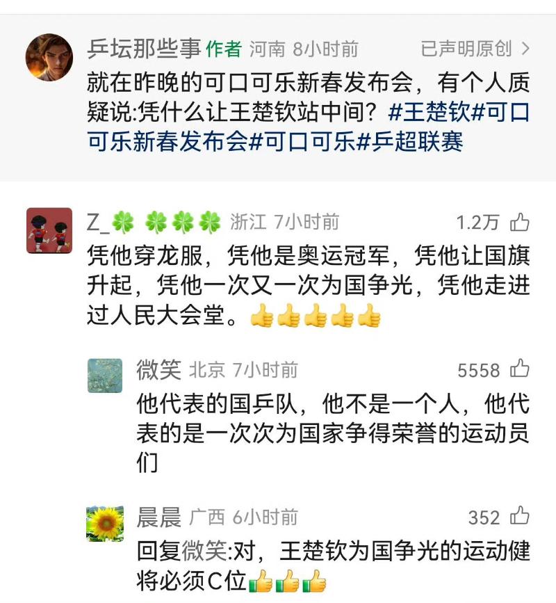 雖然但是,沒想到可口可樂女總裁的一個舉動,卻引起了全網爭議!事情的起因是在上台時,王楚欽最後上台,結果被安排站在了C位👇