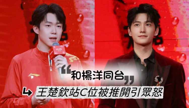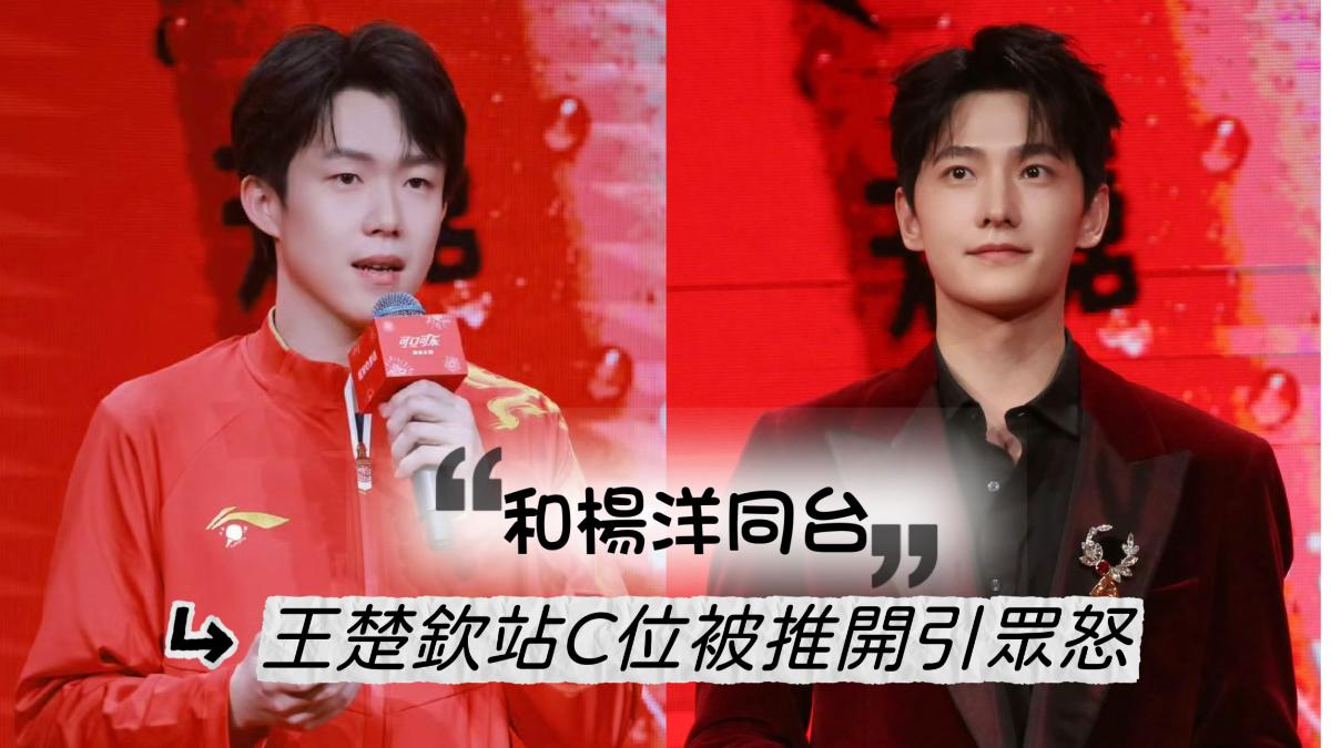 隨後,可口可樂女總裁上台之後,居然手動推開了王楚欽,讓楊洋站在了C位👇