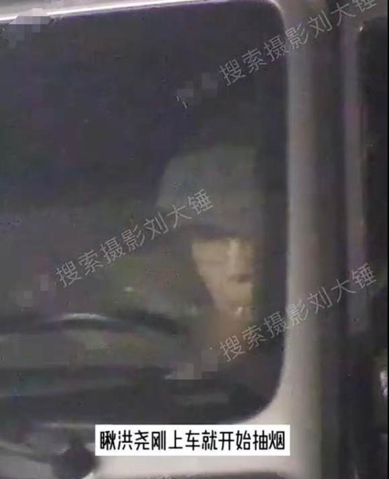 讓人傻眼的是,狗仔拍到兩人上車之後,洪堯居然大喇喇在車內抽煙👇