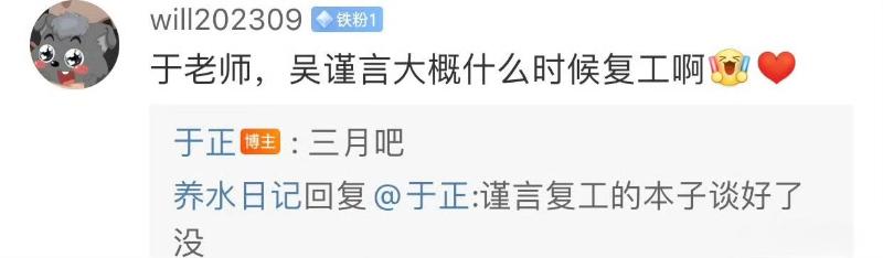 雖然吳謹言沒有官宣,但從路透和活動圖來看,都顯示她已經大腹便便,在11月新劇殺青之後,更是全面休息,其老闆于正也回復網友,表示她明年3月才會復工!