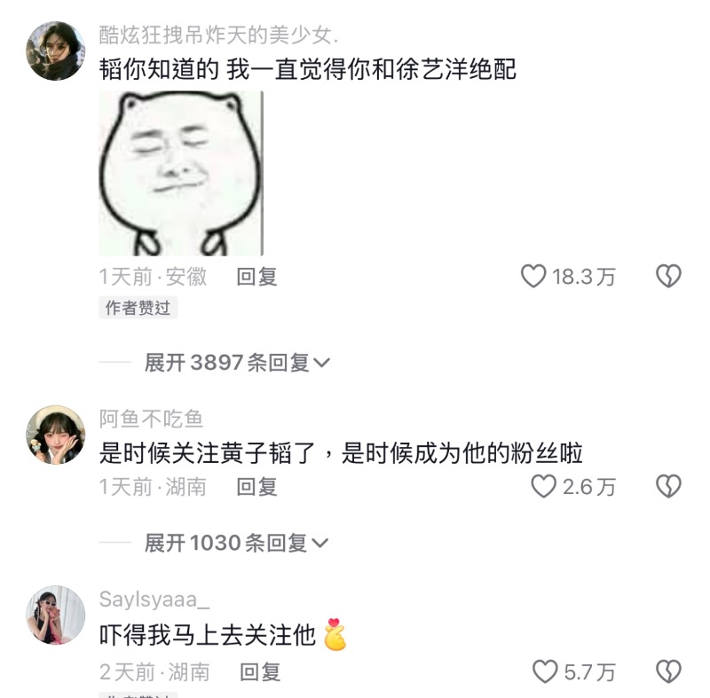 媽啊~~這消息一出,評論區都炸了!有忙著稱讚黃子韜、祝福徐藝洋的,有忙著許願的,也有忙著看熱鬧的,真的熱鬧極了!
