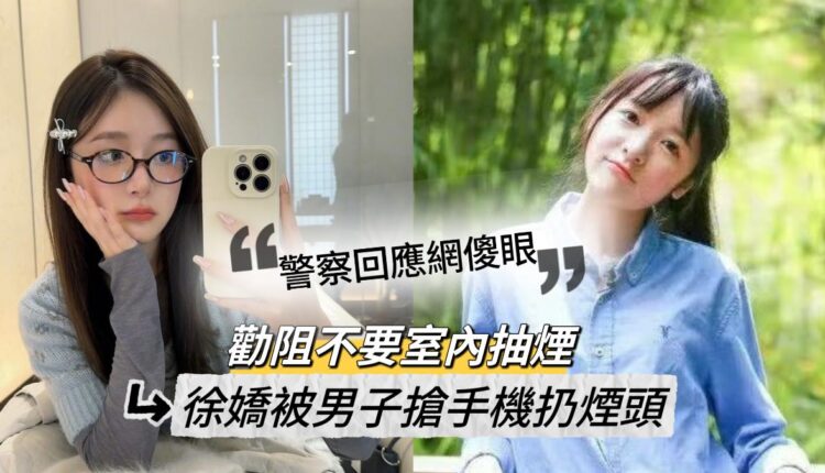 離譜!徐嬌勸阻勿室內抽煙…反被惡男搶手機扔煙頭!警方回應網傻眼!