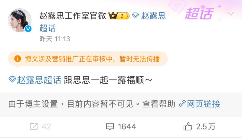 網友也發現趙露思無預警關閉了微博👇