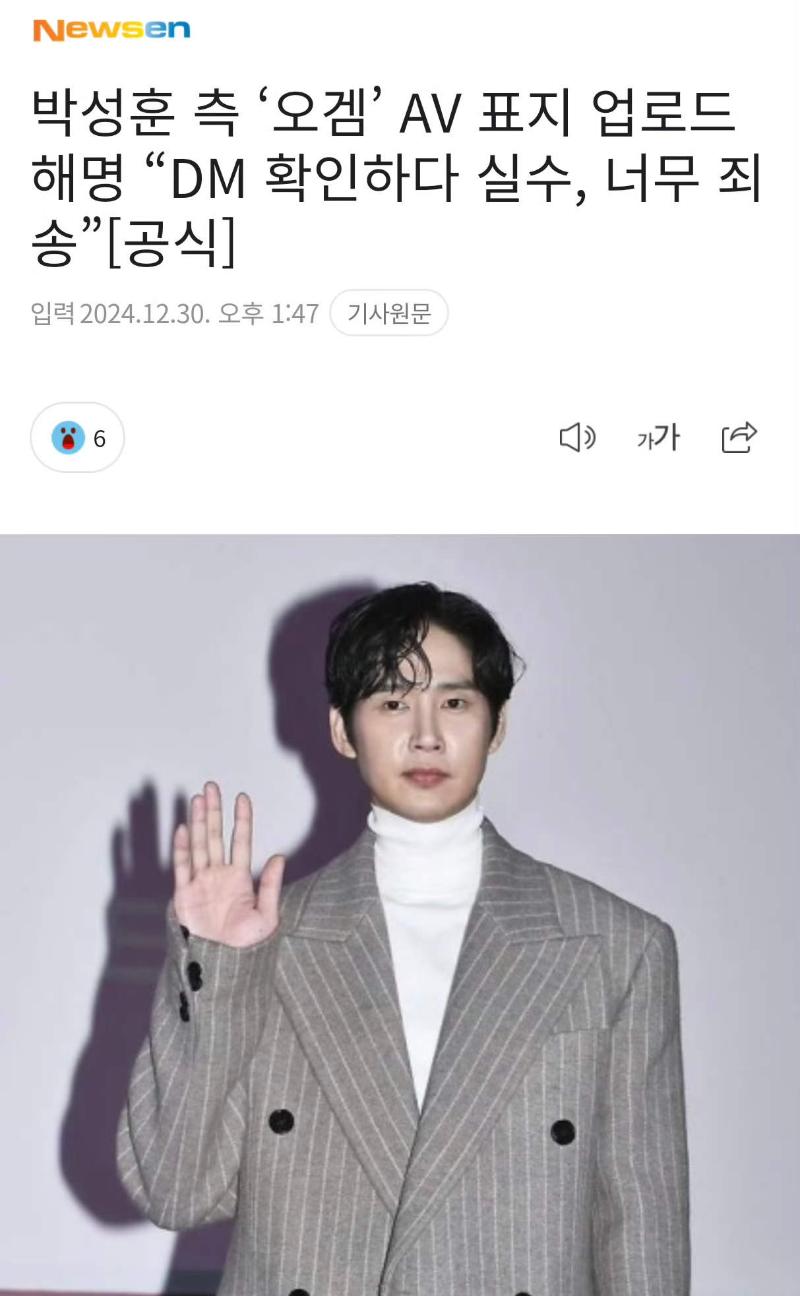 雖然朴成焄火速秒刪,但還是引起全網熱議,隨後其經紀公司回應,表示:「朴成焄ins上收到了很多私信,在確認私信時不小心上傳了」,並稱朴成焄本人也非常驚訝,對出現這樣的失誤感到非常抱歉。