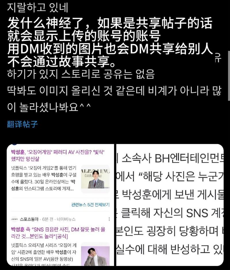 雖然但是,網友認為誤傳的可能性十分小,因為如果是確認私信的話,也只會通過私信共享給別人,不會通過限動分享~如果是共享帖子的話,轉發也會顯示原賬號的賬號名字,但是朴成焄這個卻沒有任何其他人的賬號,經紀公司說法根本不成立!