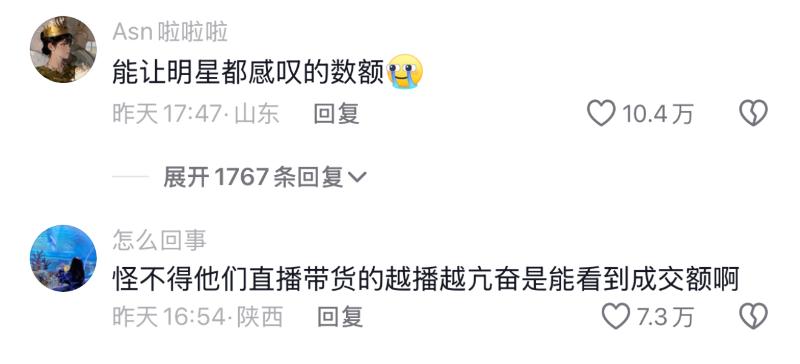下一秒立刻滿臉震驚的說:「天呐!你這直播間賣了這麽多錢今天!!!」