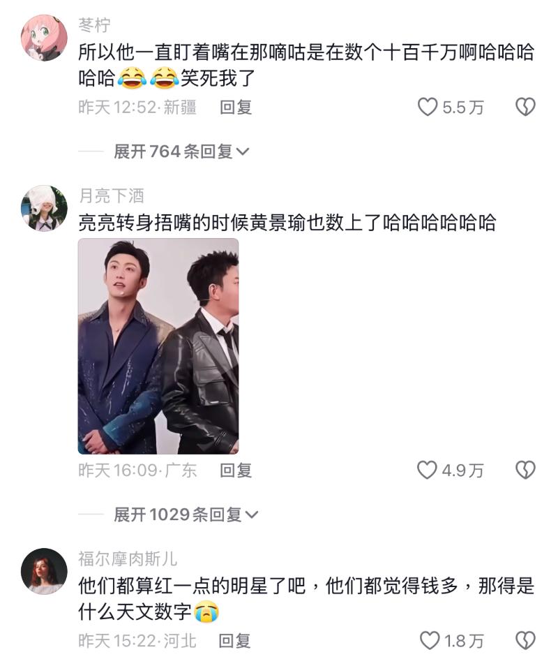 不管是破億,還是5000-7000萬,能讓龔俊和黃景瑜有這種反應,對普通老百姓應該都是天文數字,來看看網友熱評👇