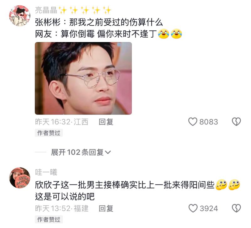 更抓馬的來了~適逢張彬彬、孫珍妮主演的《千朵桃花一世開》,沒想到虞書欣居然到張彬彬微博為他新劇助力,甚至主動cue了張彬彬的表情包,而張彬彬還用了表情包回復!