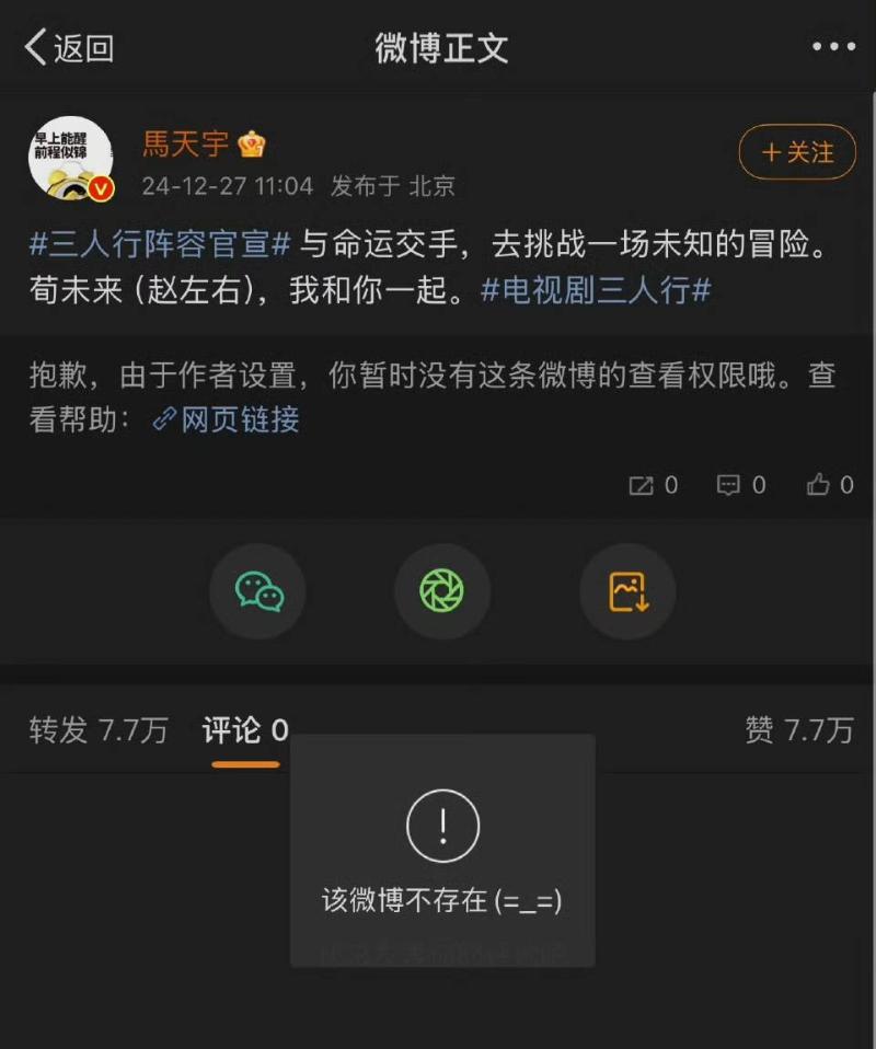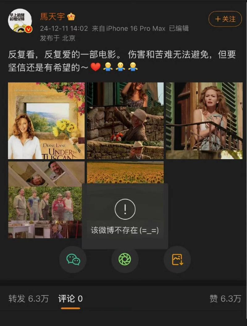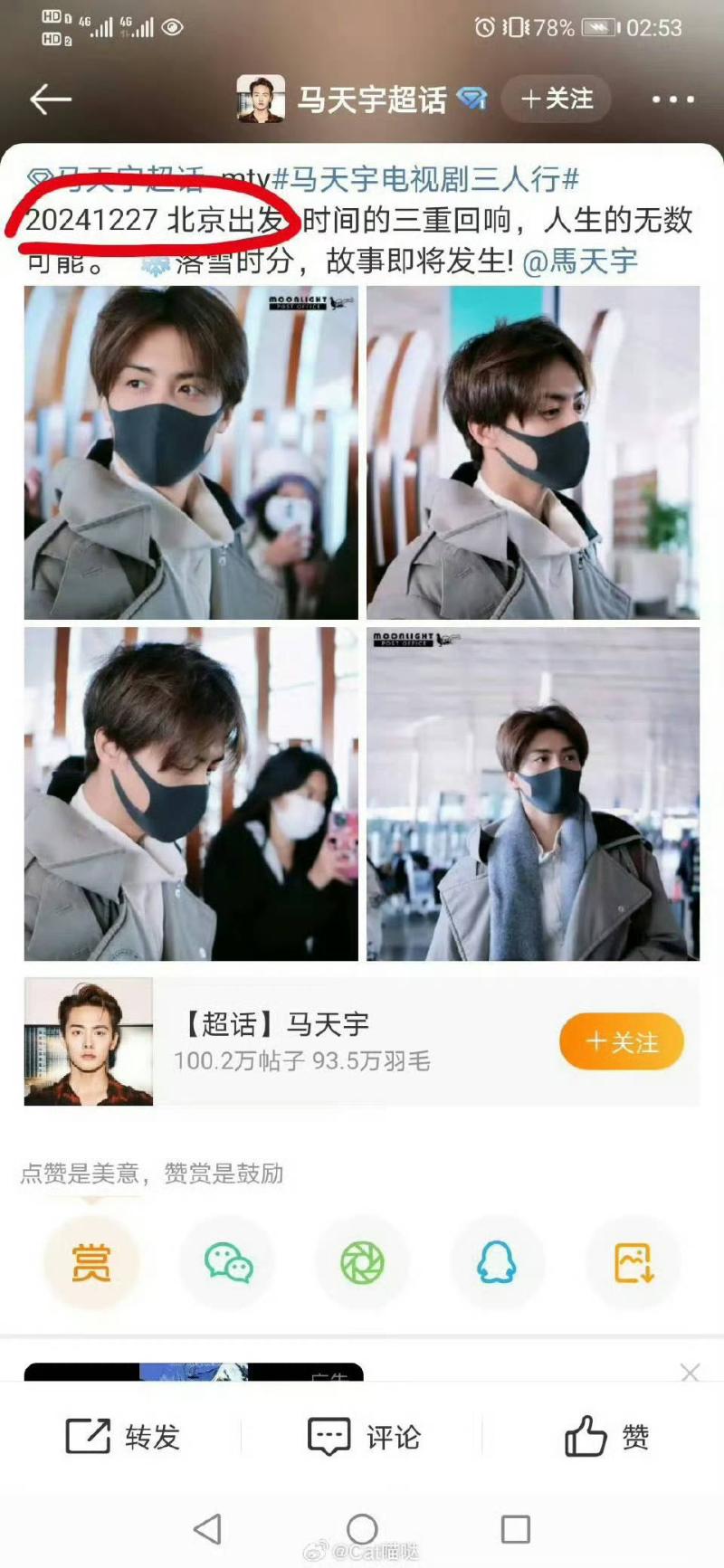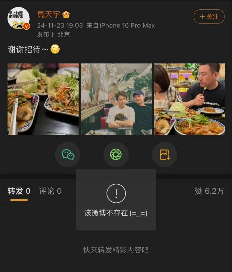 網友也發現,在被質疑究竟幾號進組之後,馬天宇瘋狂刪除了11~12月底所有帶有IP在「北京」的貼文,疑似掩蓋自己遲進組👇