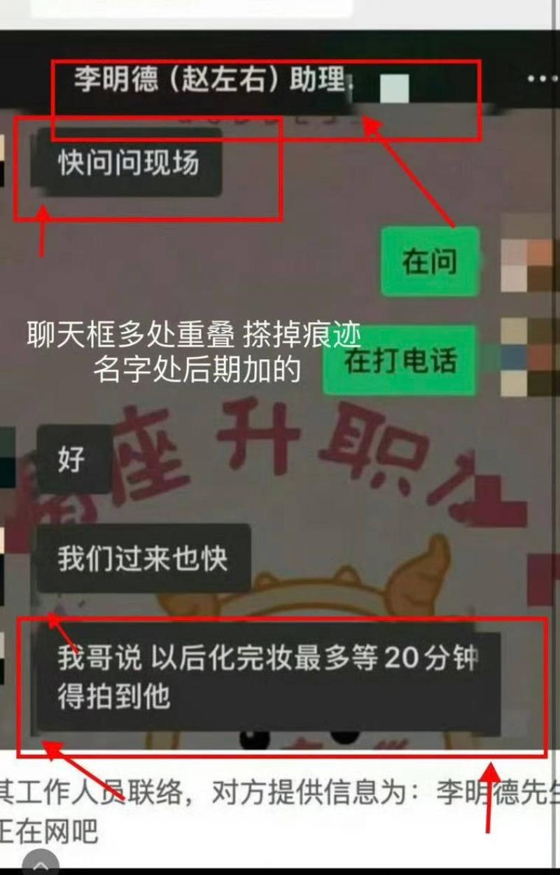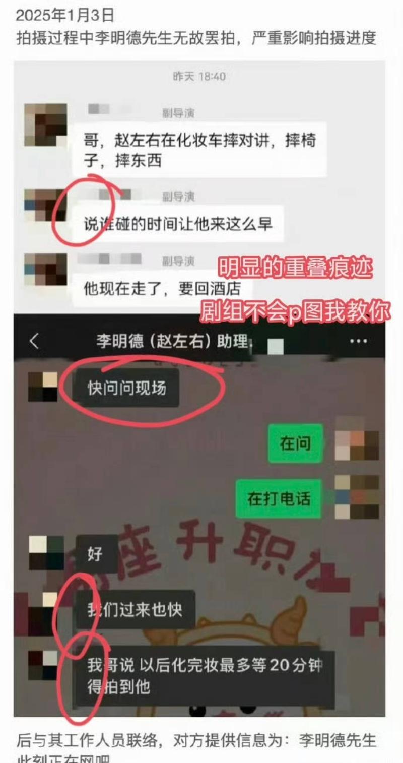 看完了三方供詞,現在來看看衍生出來的爭議~首先對於劇組,眼尖的網友發現,劇組放出來的聊天截圖,有十分粗糙的P圖痕跡,疑似造假👇