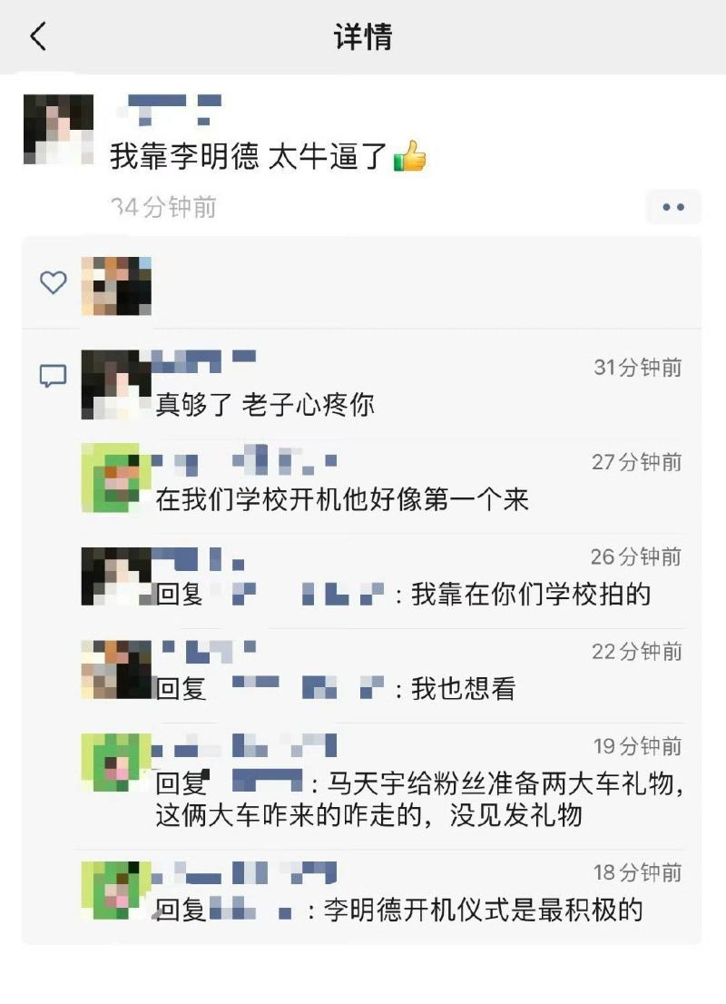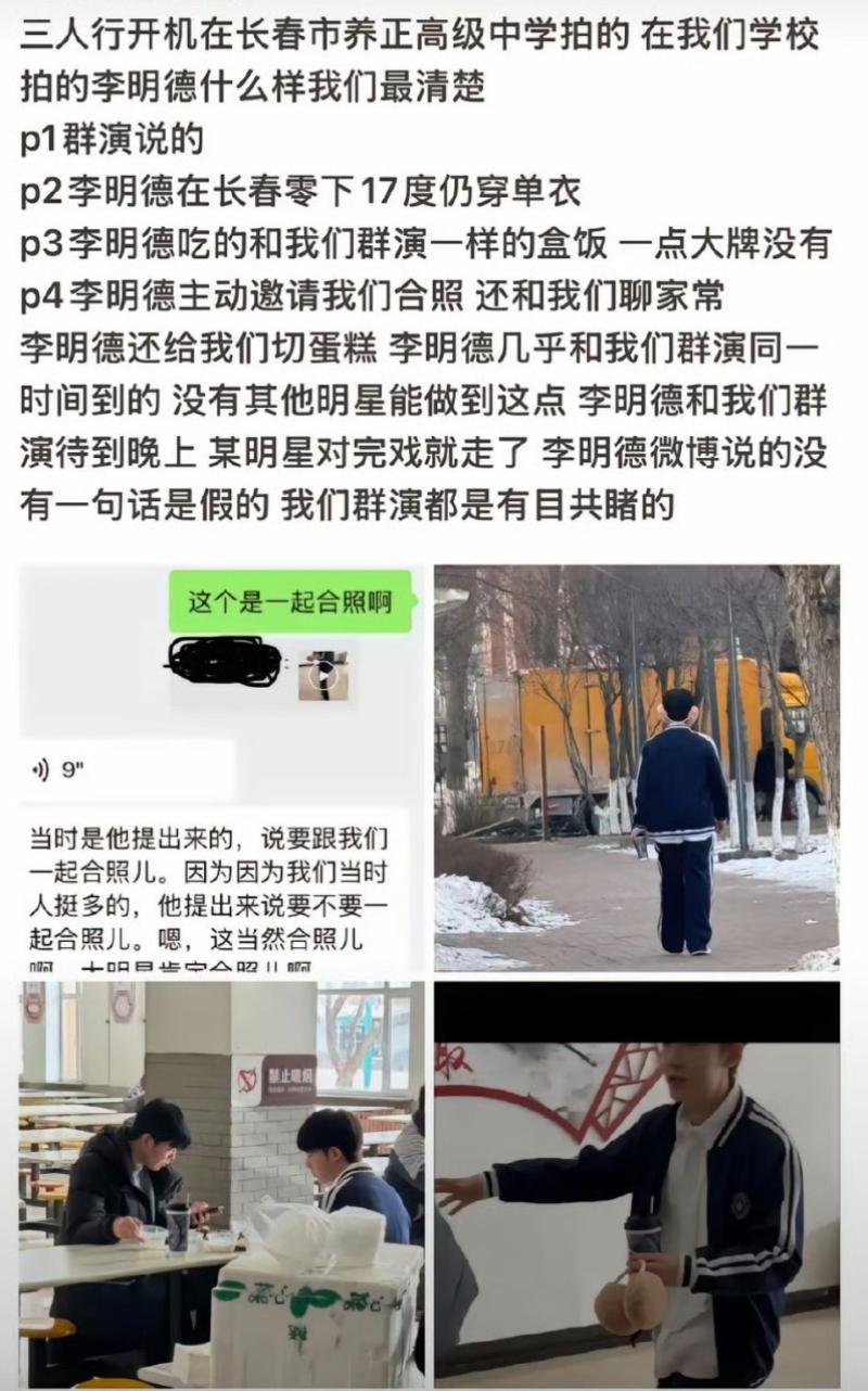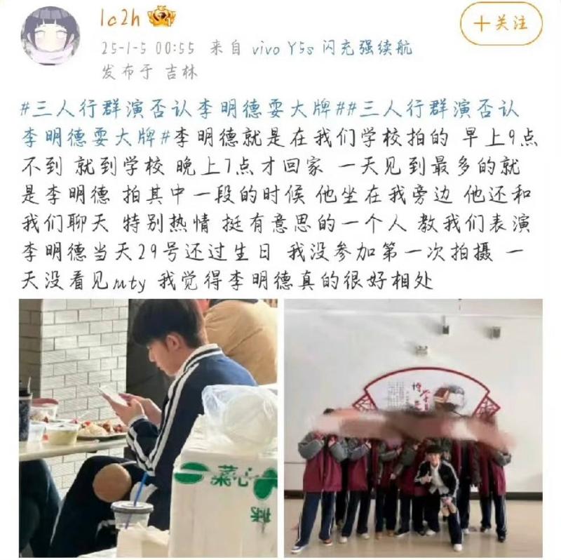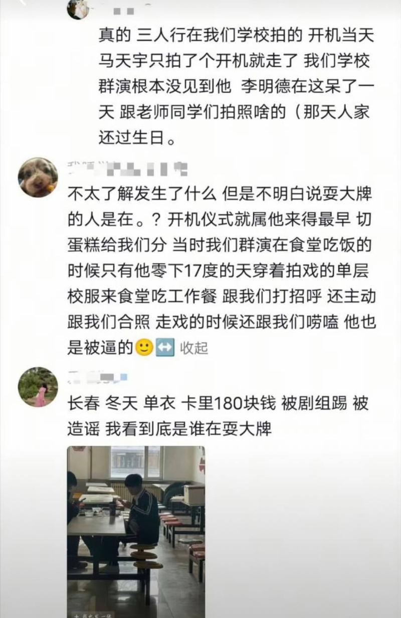 由於《三人行》拍攝地在中學,還有很多學生出來力挺李明德,表示真的看見他大冬天穿著單衣在劇組,而且態度十分親切👇