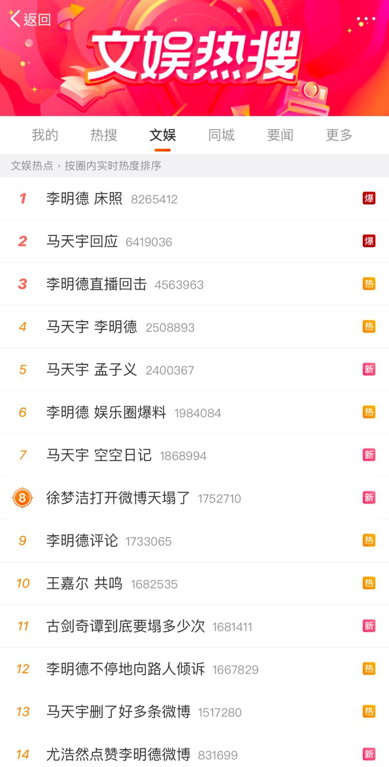 最後的最後,目前熱搜榜幾乎全都是李明德、馬天宇相關,真的力壓星光大賞啊!
