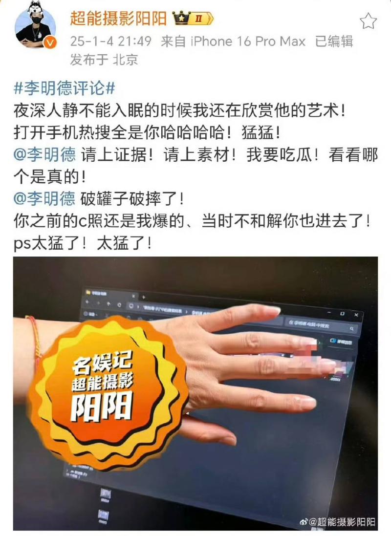 在多方爆料之後,也有狗仔爆出李明德的床照,雖然但是,不少網友認為這是他私生活,和現在針對馬天宇究竟有沒有耍大牌毫無關聯👇