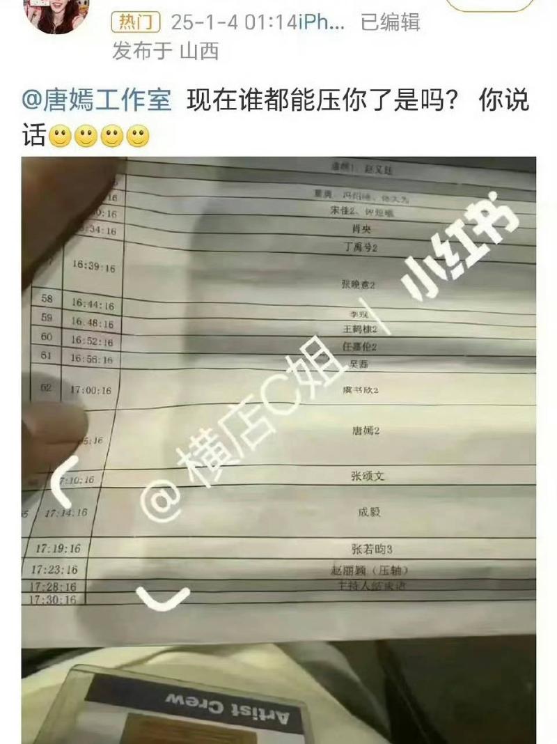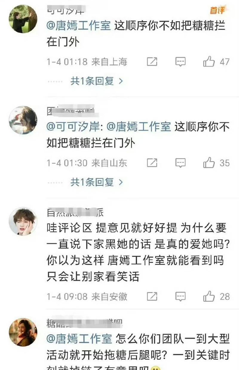 當時唐嫣的粉絲直接放話,怒斥工作室為什麼會允許這種順序,還有的更喊話,如果這樣的順序,不如關上門不給唐嫣進去👇