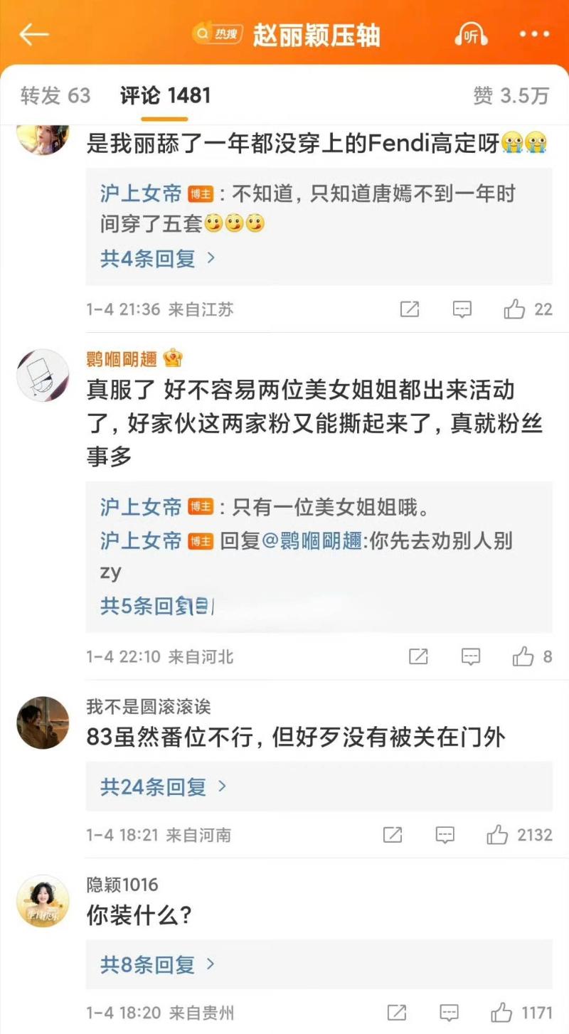 雖然紅毯順序輸了,但對比唐嫣直接穿了Fendi頂級高定,壓軸的趙麗穎則被發現穿了已經亮相過的高定禮服,被其他85花粉絲暗嘲咖位不夠,更直接發文艾特了她的工作室👇