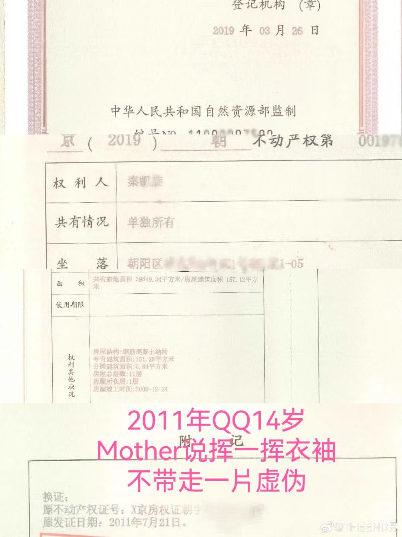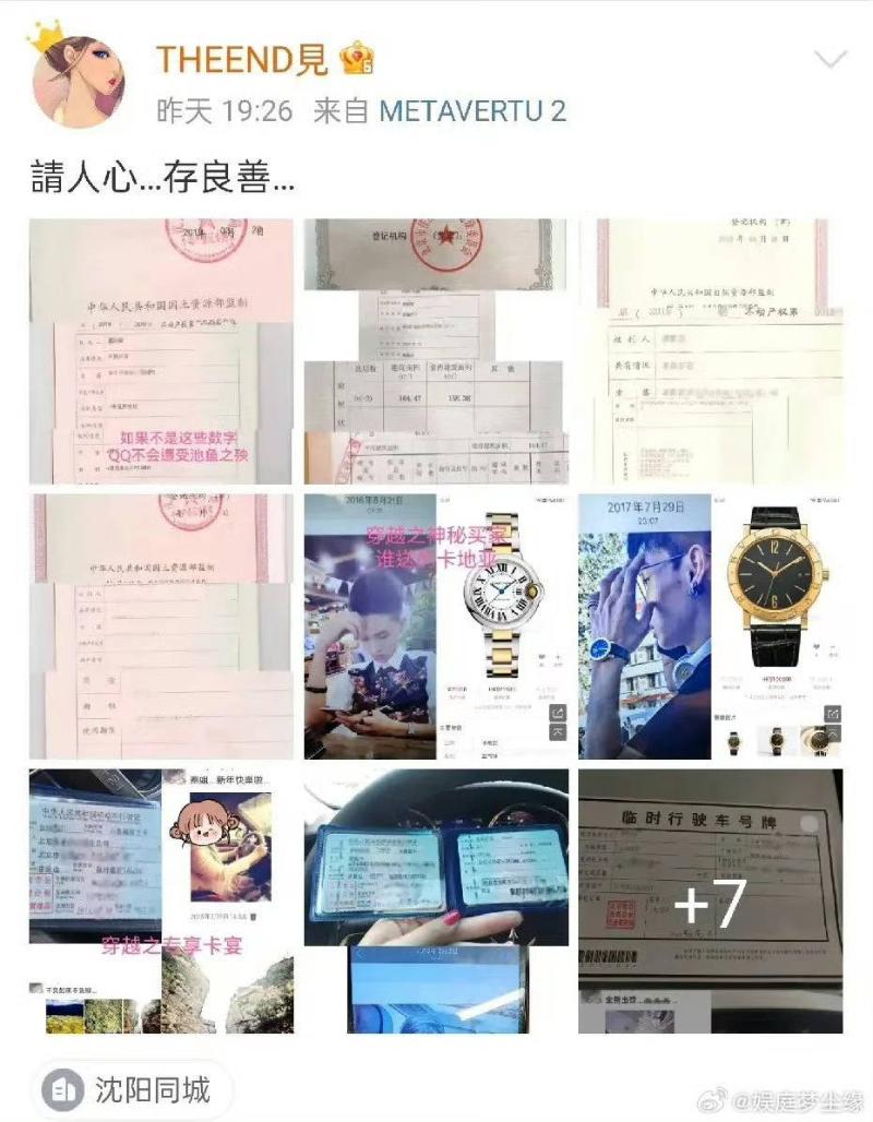 1) 辛雨錫指控秦霄賢是假富二代吃軟飯,姐姐展示了秦霄賢14歲開始,就擁有兩套獨立150平米北京朝陽區房子的照片,並在沈陽擁有1000平+全款房子。另外,男方所戴貴重手表和名下車房,都是家人所贈。