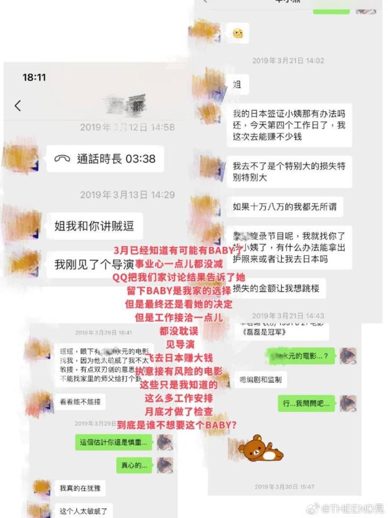 5) 關于男女關系的爭議,女方錘男方逼迫打胎,女方公開的病例單上(3月31日)顯示至少一個月才可以墮胎,但在未滿一月時(4月25日),女方出現需要衛生巾的情況,且在未滿一月時,女方進武打戲組擔任女二角色,對女方打胎事件存疑。