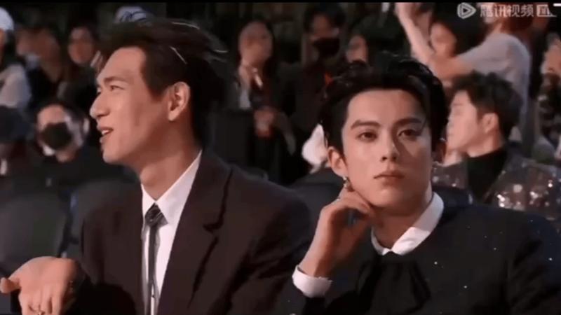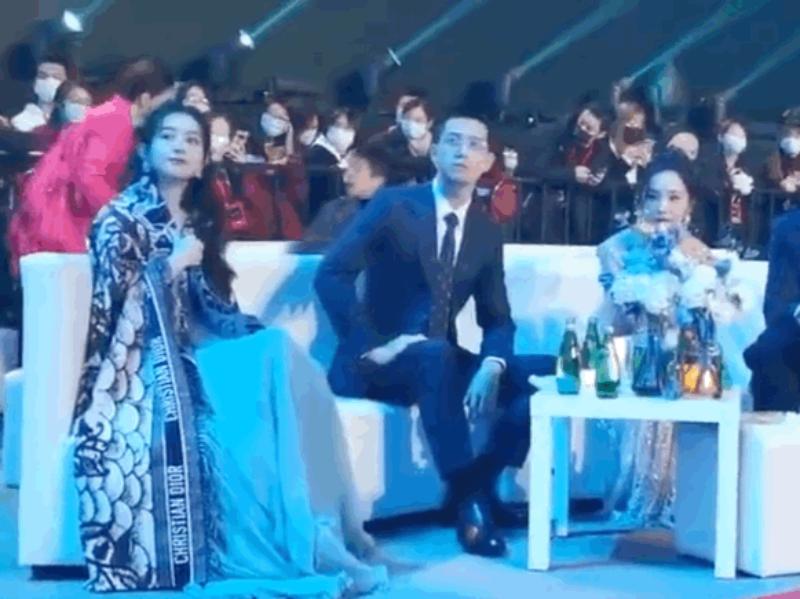 當然,仔細一看就會發現,李現右手邊坐的是衝上台去接人的丁禹兮,而他另一邊坐著的,則是全程冷臉目睹這一切發生的…也就是虞書欣另一對大熱CP「棣欣引力」男主王鶴棣!難怪李現十分尷尬,不曉得是不是應該大膽鼓掌啊!