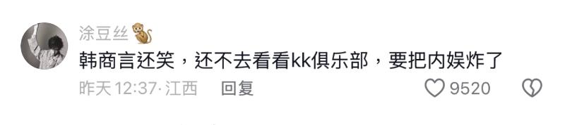 最後這裡科普一下,網友一直在cue的KK俱樂部,說的就是這兩天屠了熱搜榜的李明德,他在《親愛的,熱愛的》中飾演「97」,難怪網友都在cue韓商言去管管!最後,這位網友的評價最真相,感覺李現出了內場,就是這表情啊!!!