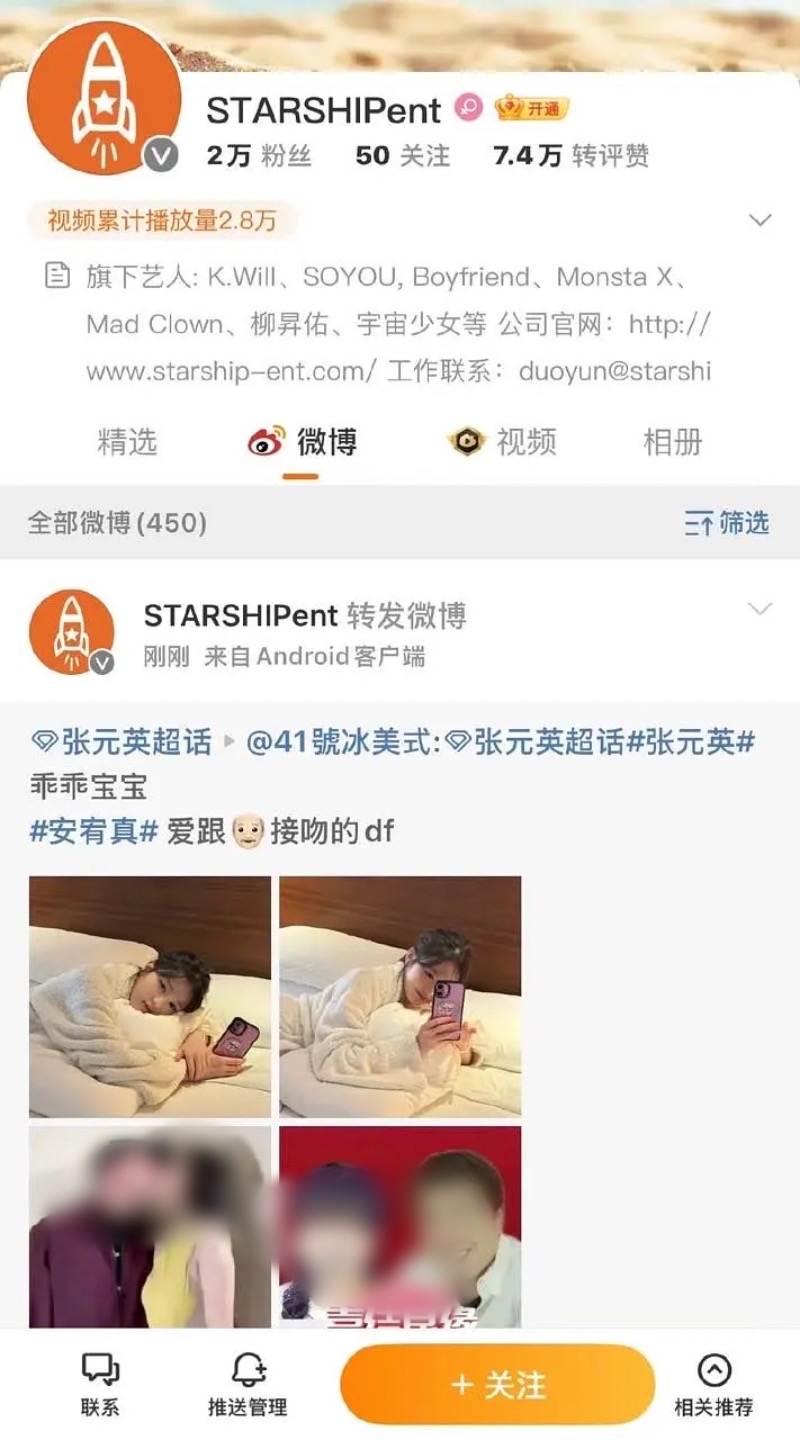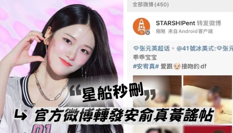 沒錯,網友發現星船微博官號,居然在9號轉發了成員安俞真的造謠黃帖,帖中的照片顯然用了ai效果👇