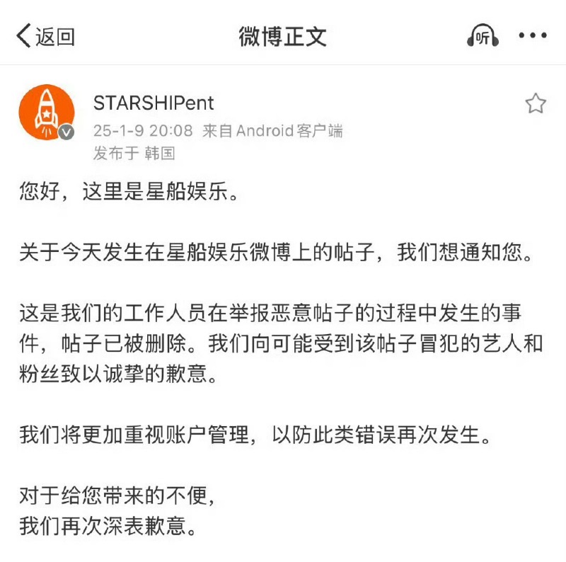 不是,這工作人員真的該負全責吧?是達,IVE所屬經紀公司StarShip娛樂,也被粉絲稱為星船,其官方微博帳號居然公然轉發成員黑帖?