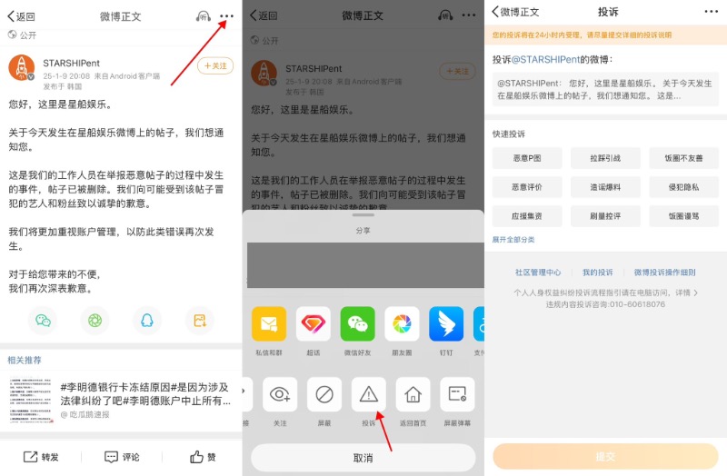 堂堂官博居然帶頭造謠?雖然秒刪,但這操作直接引發粉絲不滿!星船官博隨後發聲明,表示工作人員在嘗試舉報造謠帖時,不小心按到了轉發鍵👇