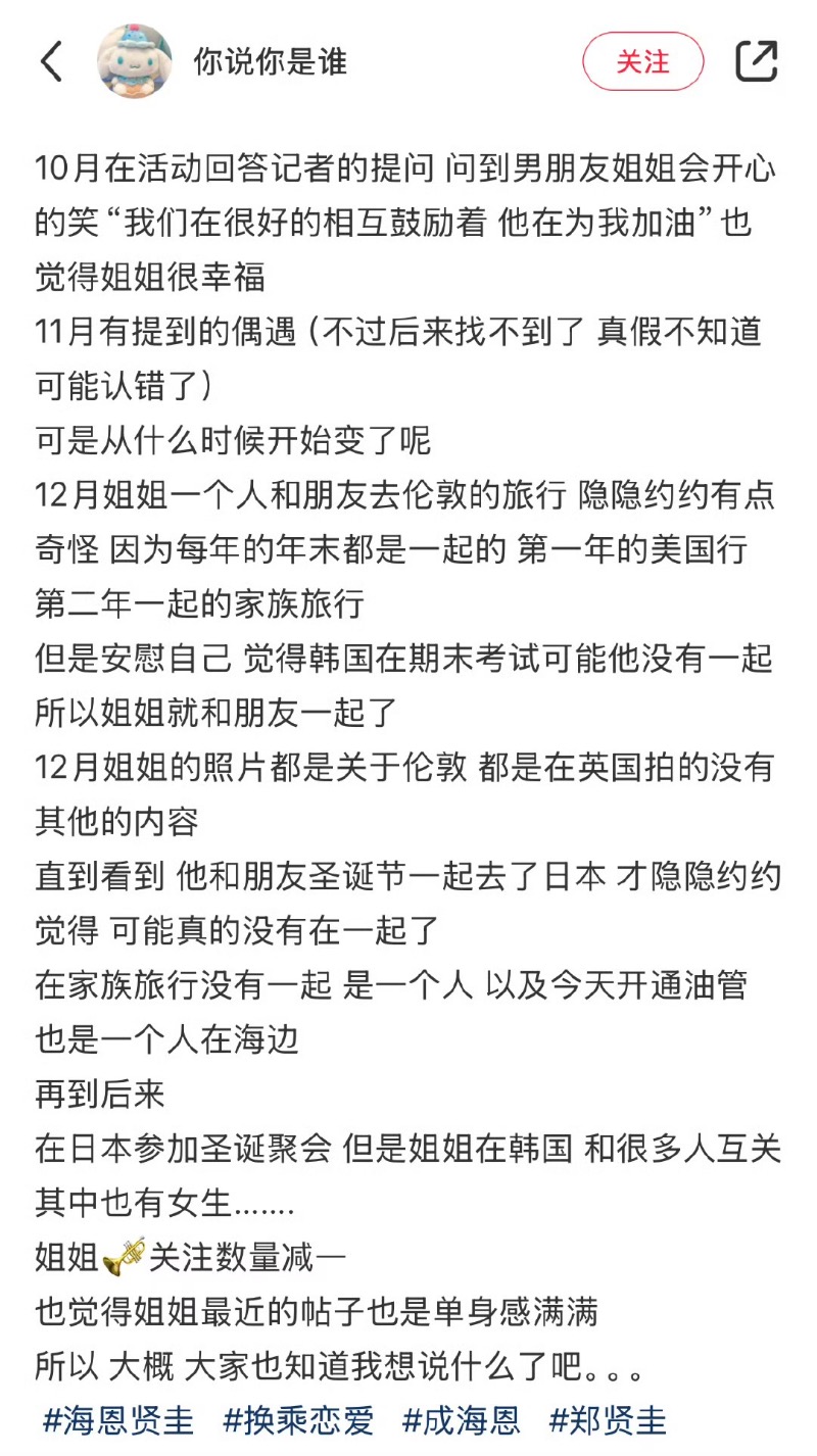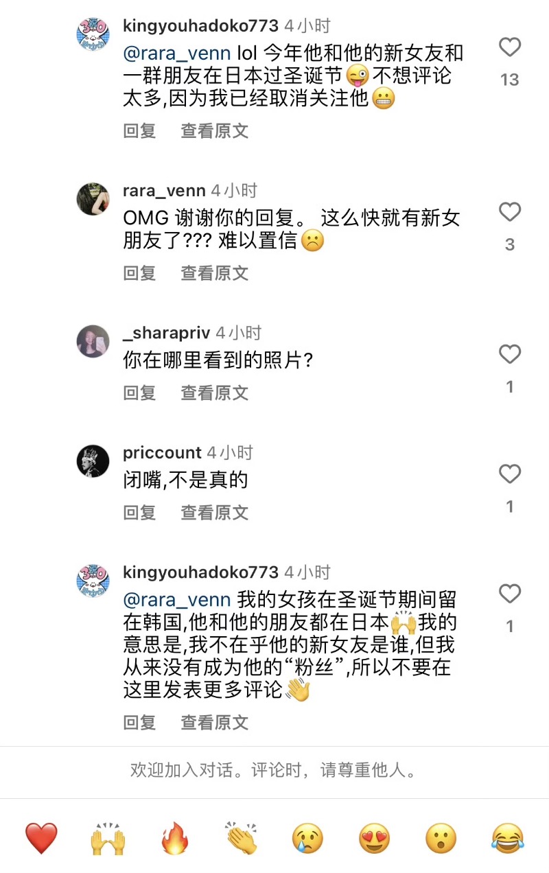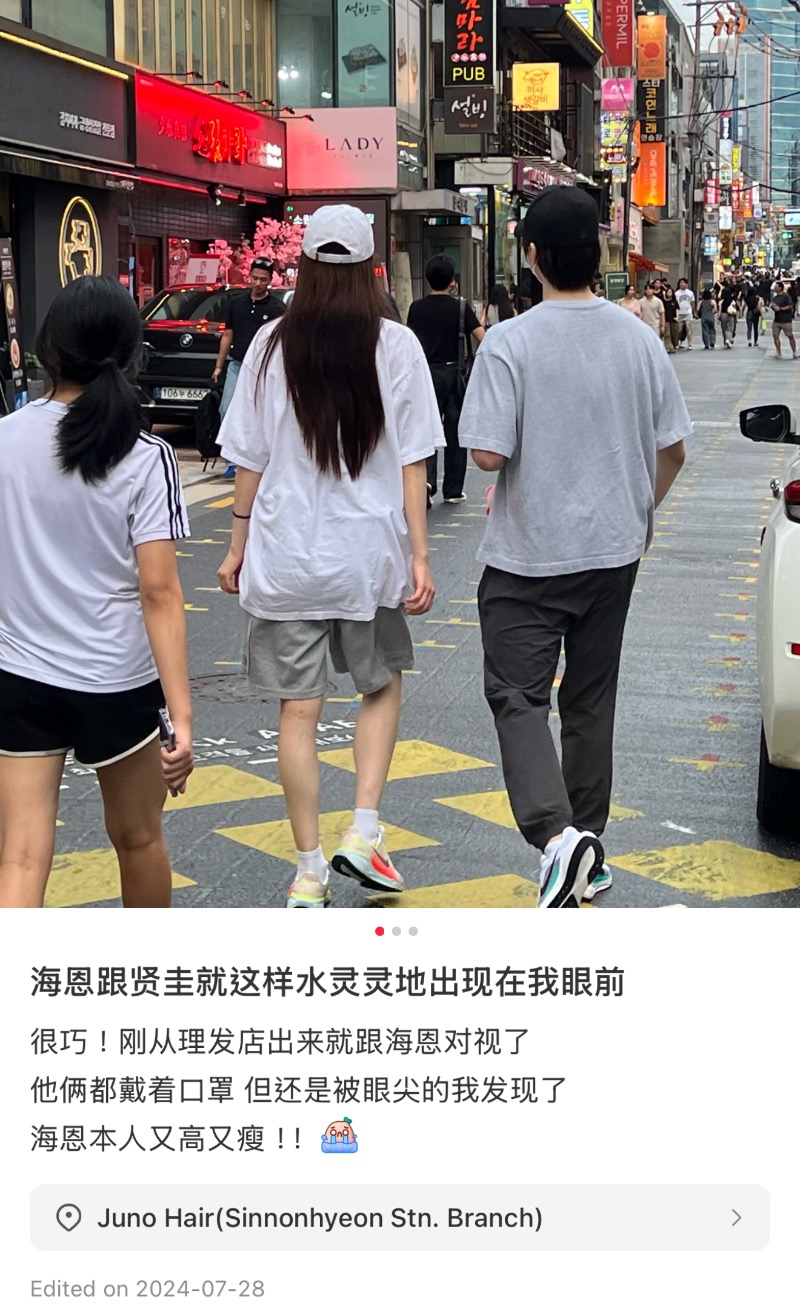 有網友聖誕節在日本偶遇賢圭,也是和朋友一起,並沒有海恩。而其社交平台的評論區,就有網友留言表示他已經有了女友👇
