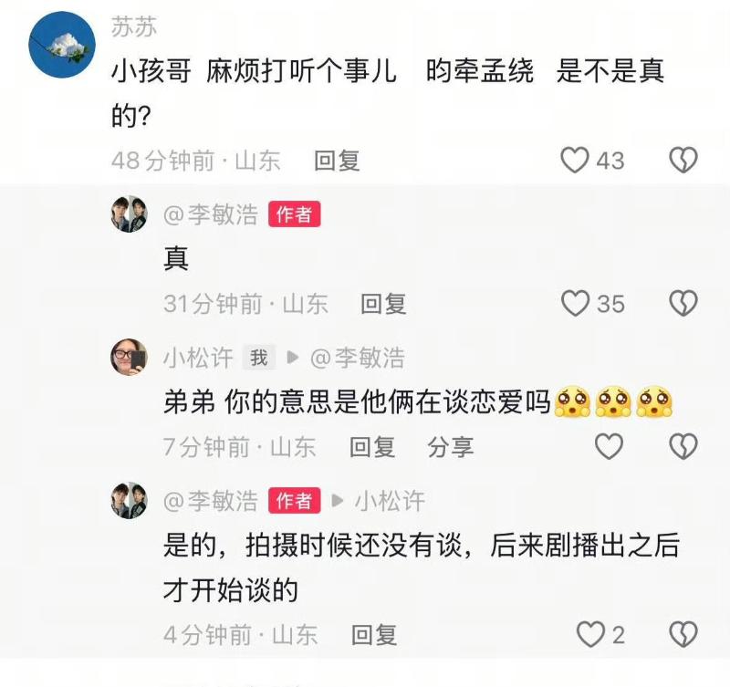 來看看,小孩哥兩次都回應表示「昀牽孟繞」是真的👇