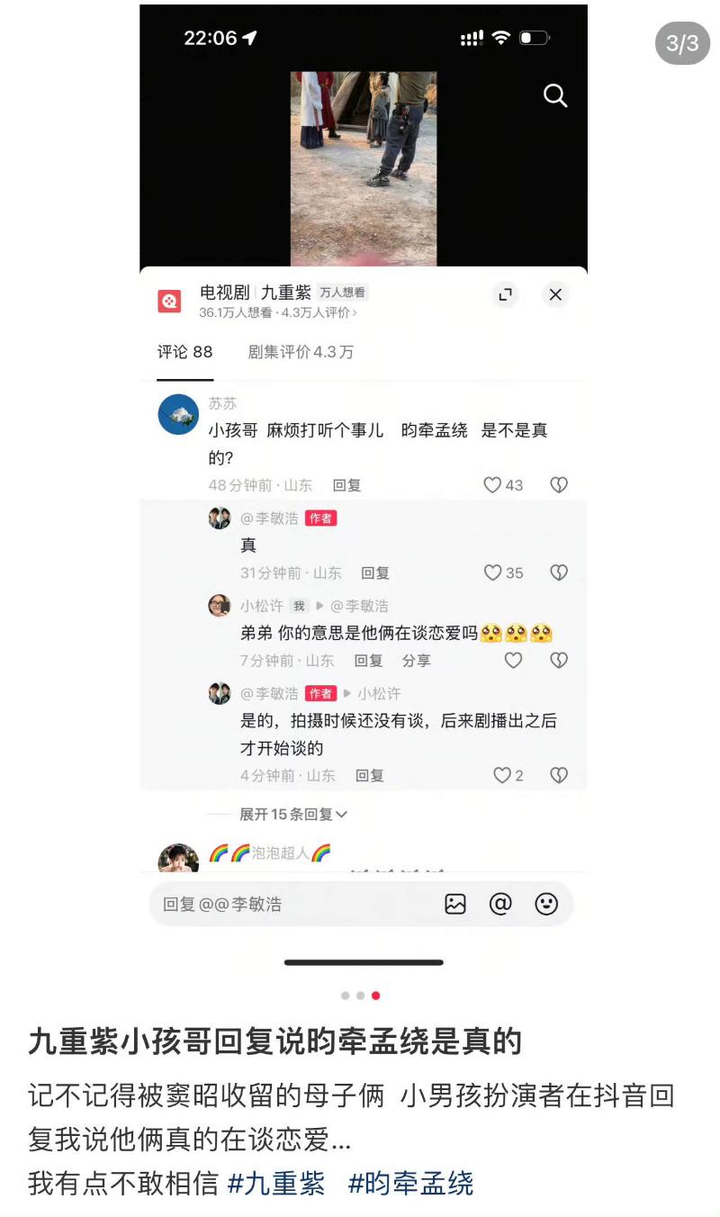 沒想到,正當CP粉還在線扒糖找線索時,居然就有人幫忙兩人官宣了???是噠,曾經在《九重紫》被竇昭(孟子義角色名字)收留的小男孩扮演者,在自己的社交平台,認證昭昭墨墨是真的!!!